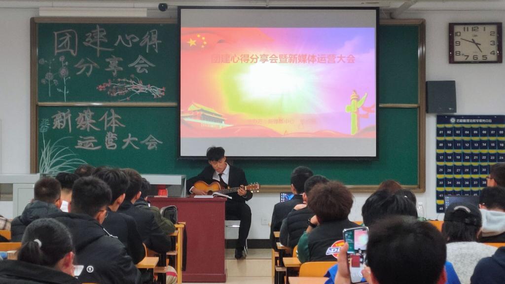 会议伊始,优秀团支书代表唐容容首先向学子们分享了团日活动以及答辩相关经验,介绍了团日活动中的教育活动,科技活动,公益活动,组织活动,文娱活动,体育活动相关内容,并对大一团支书日后的工作寄予了很高的期望。紧接着,优秀团支书代表温昕介绍了团日活动的美好经历和团支部建设相关心得。赢得了在场各班代表的热烈反响,为新生与大二各班组织团建活动提供了方向与优秀榜样。会议休息过程中,抽奖,艺术表演为此次活动增添了不少色彩。最后,新媒体优秀学生代表,陈展、浩泽分别向学子们展示了新媒体运营的运行程序,分享了新闻稿写作经验与方法。陈展学长强调微信运营的关键在:帮“哪些用户”在“什么场景”解决“什么问题”。他解释道:写好一篇文章首先要弄清面向的群体,一篇文章的百分之八十都靠选题。浩泽学长通过一篇篇图文并茂的新闻稿,介绍了新闻稿的概念、要素及成分,并重点说明了新闻稿的时效性和标题的重要性。