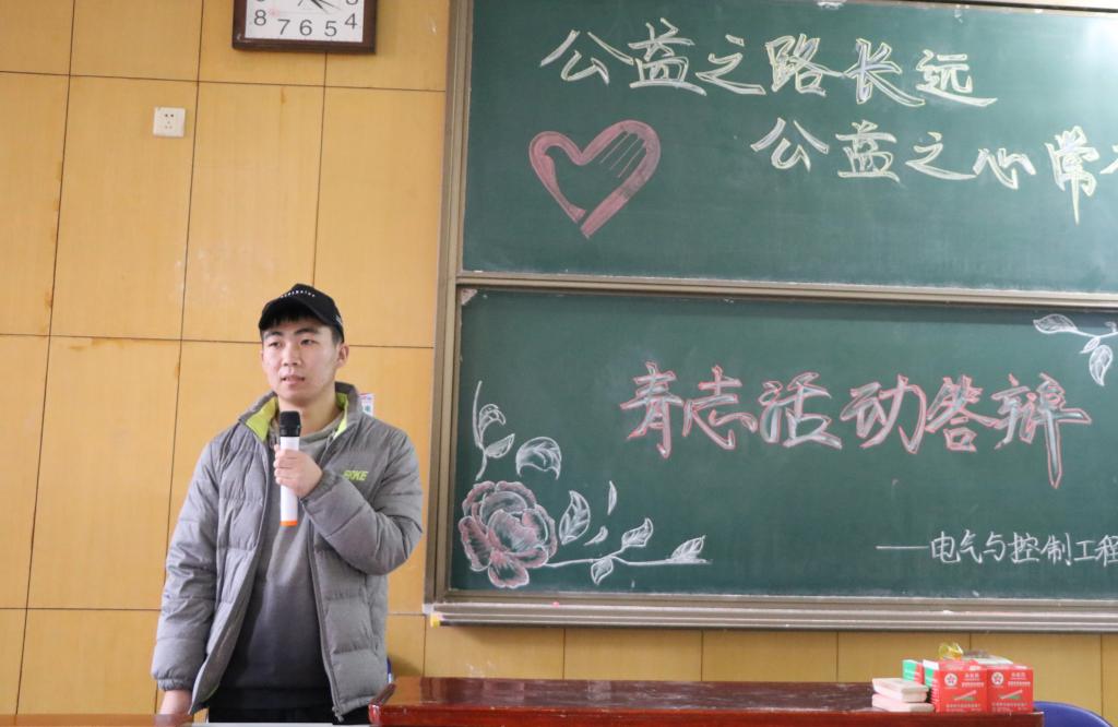 为促进校园精神文明建设,全面提高青年素质,传递校园正能量,让我院同学更好的理解志愿服务项目,检验各青支队青志活动的成果。电气与控制工程学院学生会·青志部于11月22日下午3点在11308教室举办了以“公益之路长远,公益之心常存”为主题的青志活动最终答辩。 我们邀请了校青协主席和团支书、各学院青志部部长作为评委,电气与控制工程学院学生会主席团成员作为嘉宾。
