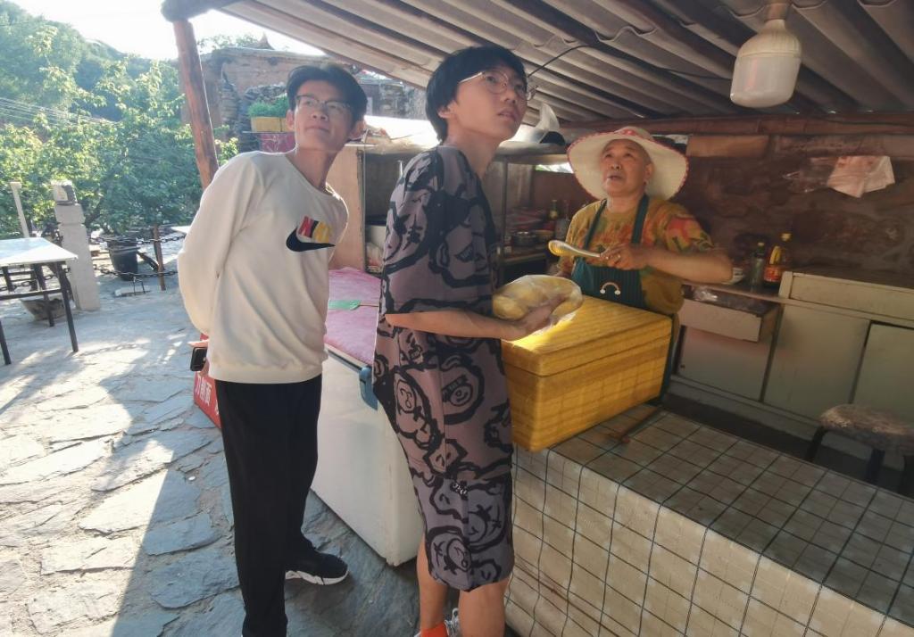 我们吃过饭后又去四处走访,古村那些高龄老人依旧在忙碌之中,砍柴,砌墙,修补屋顶……看见老人们脸上沟壑般的皱纹,我们依旧感到心酸。我们再去拜访卖窝窝头的老奶奶,她依旧满脸慈祥的笑容。对于农村人口以老人为主的问题,她讲道,现在还在的老人,主要是对村落含有不舍的感情,不愿意走。但是这不禁让我们想道,缺少年轻人的古村,往后该怎么办呢?