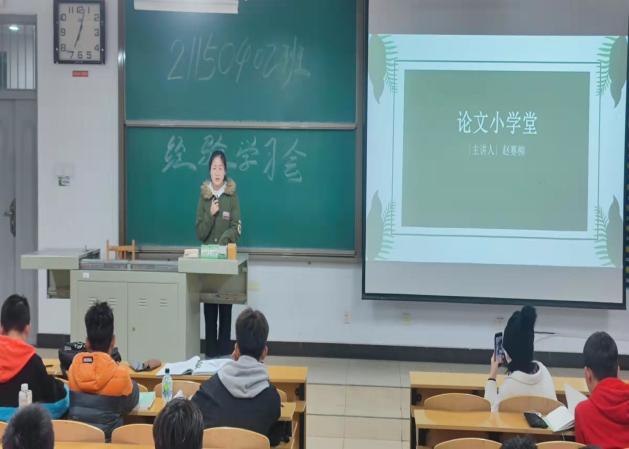 为了更好的了解大学生活,充实同学们的大学生活,让自己的目标更加明确。2021年11月1日,我院21150402班集体在15303教室开展了论文小学堂,活动邀请了我院保研学姐赵赛柳介绍如何应对处理大学生活,分享学习干货。