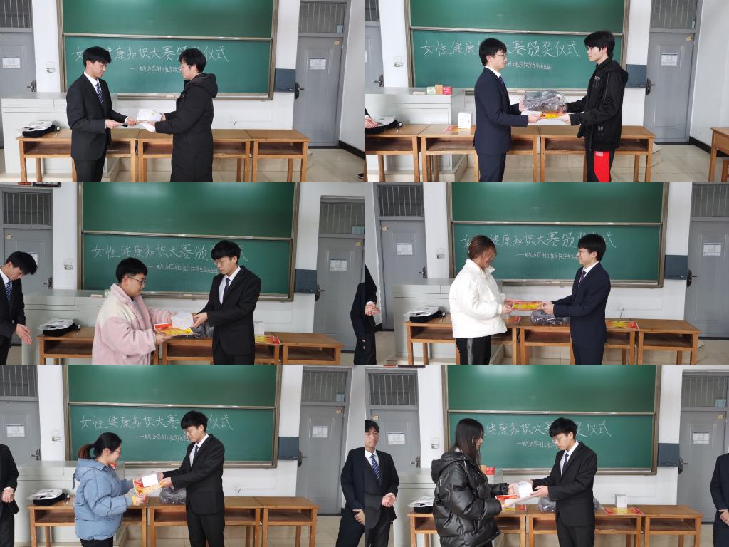 最终根据答题分数与用时长短选出了获奖人员,分别设有一等奖一名,二等奖二名,三等奖三名,优秀奖一名,并于11月28日15时为此次大赛获奖者颁奖。工作人员与获奖同学合影留念,中北大学电气与控制工程学院女性健康知识大赛圆满成功。