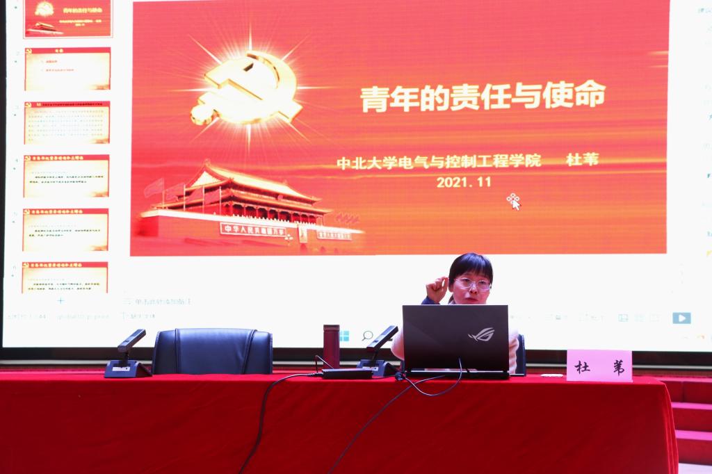 青共校培训课程环节,首先由电气与控制工程学院党委副书记杜苇老师授课。杜老师以《青年的责任与使命》为主题,希望学生骨干要坚定理想信念,牢记习近平总书记对广大青年的嘱托:要肩负历史使命,坚定前进信心,立大志、明大德、成大才、担大任,努力成为堪当民族复兴重任的时代新人,让青春在为祖国、为民族、为人民、为人类的不懈奋斗中绽放绚丽之花。