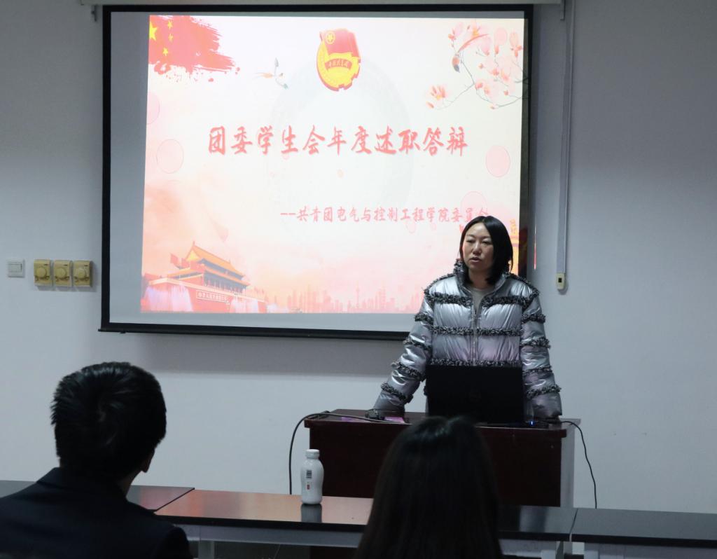 为了总结本学期学生会等服务组织的工作经验和教训,汇报工作成绩,明确今后发展方向,电气与控制工程学院于12月31号下午在主楼818举行了述职答辩大会。参与本次活动的人员有团委副书记高瑞珍老师,团委副书记董伟光以及团委学生会各部门代表。