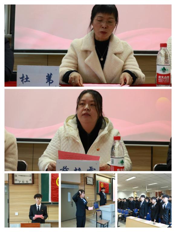 第二项由院党委副书记杜苇老师宣读电气与控制工程学院第二届第三任学生组织干部名单。第三项由学生干部代表侯清文同学发言。第四项由学生科科长薛艳霞老师宣读课程安排及培训要求。第五项由学生代表孟祥涛带领全体培训班学员庄严宣誓。
