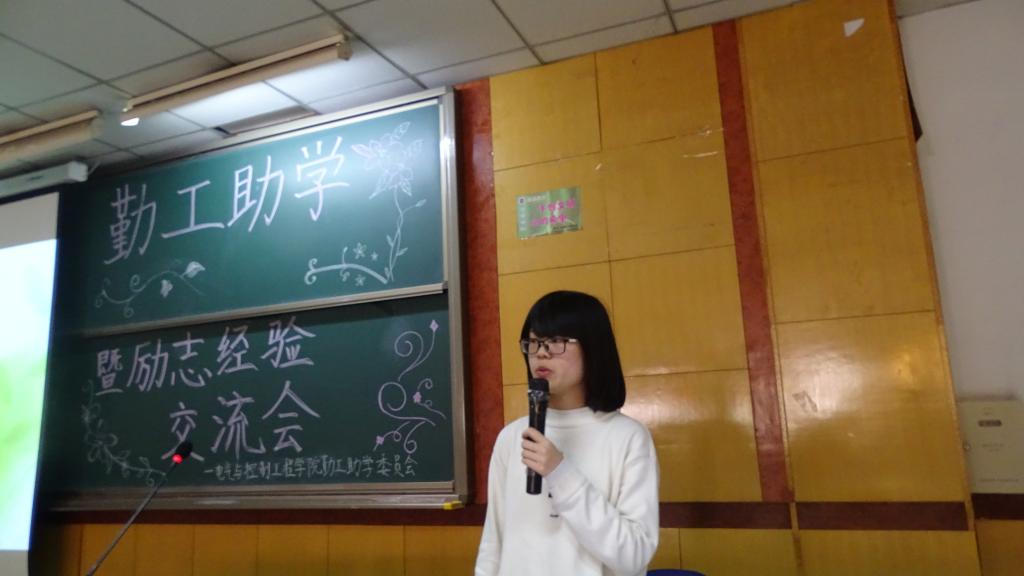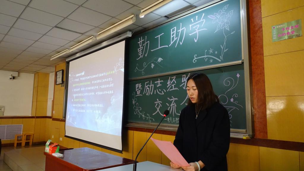 校园卫生队队长杨珊铭同学进一步向同学们介绍了勤工助学岗的上岗要求,也通过自身的上岗经历鼓励大家积极参加勤工助学岗位,锻炼自己的能力。我院2018年国家奖学金获得者李师同学和国家励志奖学金获得者张玲玲同学作为优秀励志代表向大家分享了自己学习方法、比赛经验和勤工助学以及保研经历。