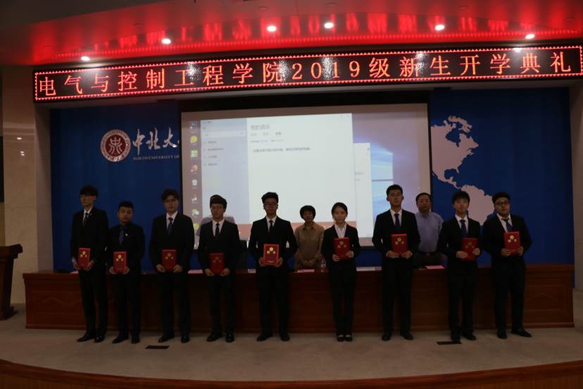 紧接着,由电气与控制工程学院科研副院长任一峰老师对优秀新生进行了表彰,期待他们再接再厉。在校生代表刘月婷同学,研究生代表雒茁君同学 ,新生代表杜轶翔同学及教师代表尤文斌老师依次发言,表达了对已经步入中北大学电气与控制工程学院的新生的表示热烈的欢迎及对电气与控制工程学院美好未来的展望。
