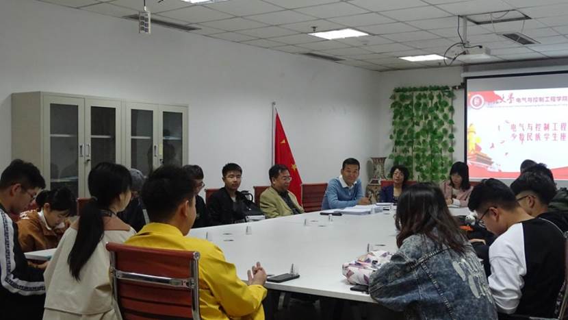 为了加深学院与少数民族同学间的沟通和交流,去更多地了解少数民族同学们的学习生活状况,同时也在中华人民共和国成立七十周年之际弘扬“民族团结”的精神,传达出学校对少数民族同学的关怀之心,电气与控制工程学院在2019年10月10日下午4:10于11619召开少数民族同学座谈会。到场人员有电气与控制工程学院院党委书记陈晔,电气与控制工程学院院长马铁华,电气与控制工程学院院党委副书记杜苇,教学副院长李晓,科研副院长任一峰,学生科老师康超,学生科老师许民宗以及院里一众少数民族学生代表。