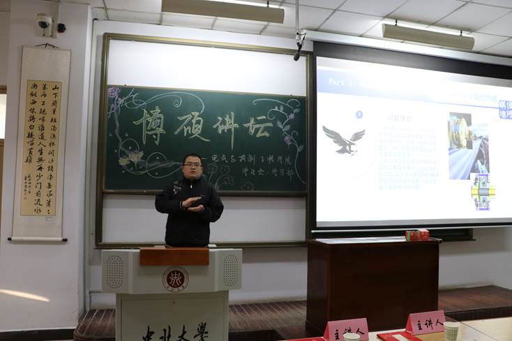 随后,第一位主讲人李春雨为大家讲解了“永磁涡流和磁性传感”相关知识,在他详细的讲解下,同学们对该方面的专业知识有了一个初步的认识。同时,李春雨同学还给大家分享了自己的学习心得及在学习钻研之路上的经验和体会,让大家深一步了解到该方面的相关知识。