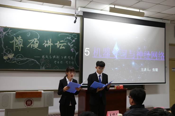 接着第二位主讲人张璇上台宣讲。他为大家带来一场主题为“机器学习及神经网络”的听觉盛宴。在他详细又生动的讲解中,同学们感受到自己与专业知识更近了一步。张璇同学也为大家分享了自己的学习经验和技巧,从而让同学们在以后的学习中尽可能减少碰壁。