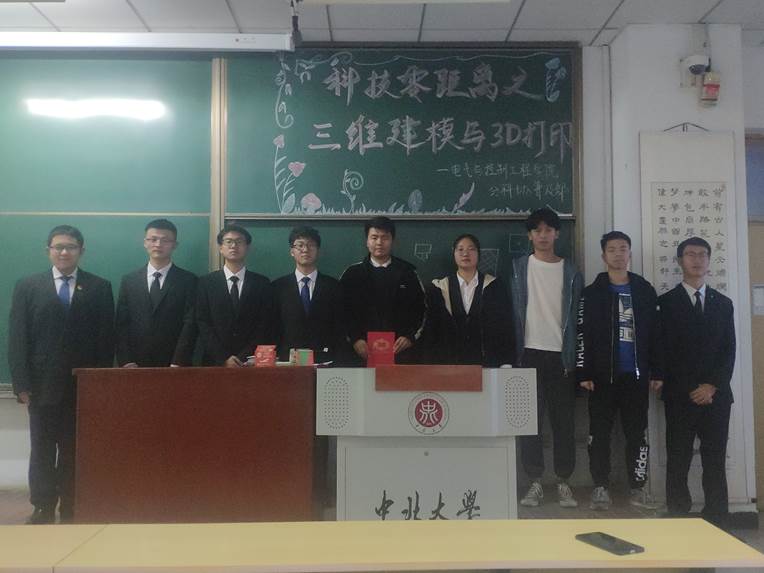 为响应党中央的号召,引导大学生了解前沿科技,丰富学生业余生活,中北大学电气与控制工程学院分科协普及部特策划《科技零距离》系列培训会,并于11月24下午在11512H教室成功举办第201901期,主题是三维建模与3D打印。