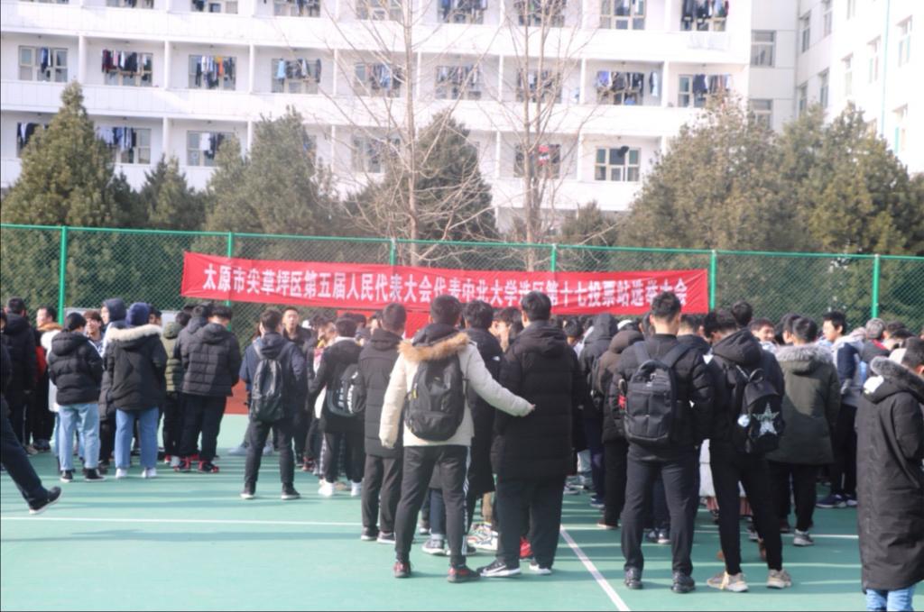 为提高中北大学的社会影响力,以致知于行的校训教诲学子,,2020年1月4日11时30分,电气与控制工程学院全院学生在西区篮球场进行了太原市尖草坪区第五届人民代表大会投票活动,向中北大学代表王强投出属于自己的一票。