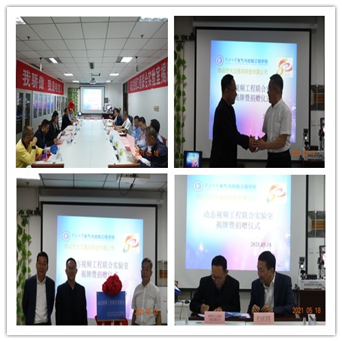 会上,校友办主任张胜利代表学校接受了捐赠。电气与控制工程学院党委书记陈晔代表学校与校友徐树升总经理签署捐赠协议,院长马铁华代表学校与校友签署产学研合作协议,双方共同为动态视频工程联合实验室揭牌。院领导和师生代表纷纷表示,动态视频釆集传输系统,对未来智能化控制工程教学、实验和科研来说,具有前瞻性和广阔应用前景。希望双方的友谊更加深厚,合作更加深入。最后,祝愿深圳市天元视讯科技有限公司蓬勃发展,再创辉煌!