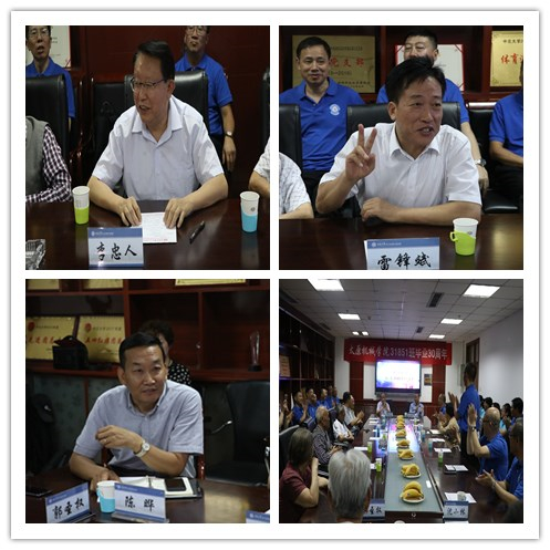 斗转星移,岁月沧桑,校友们情系母校重聚校园。8月31日,中北大学校园风景优美、秋意绵绵,原太原机械学院31851班30名校友30年后相约中北大学,学校举办了师生座谈会。我校党委书记李忠人、副校长雷锋斌、校友办主任张胜利、电气与控制工程学院院党委书记陈晔、教学副院长李晓、科研副院长任一峰,原自动控制系主任董国川,班主任姚卜文,曾任课教师郭圣权、张捷、任作新、毕满清、沈小林、王忠庆等参加座谈会。会议由院党委书记陈晔主持。