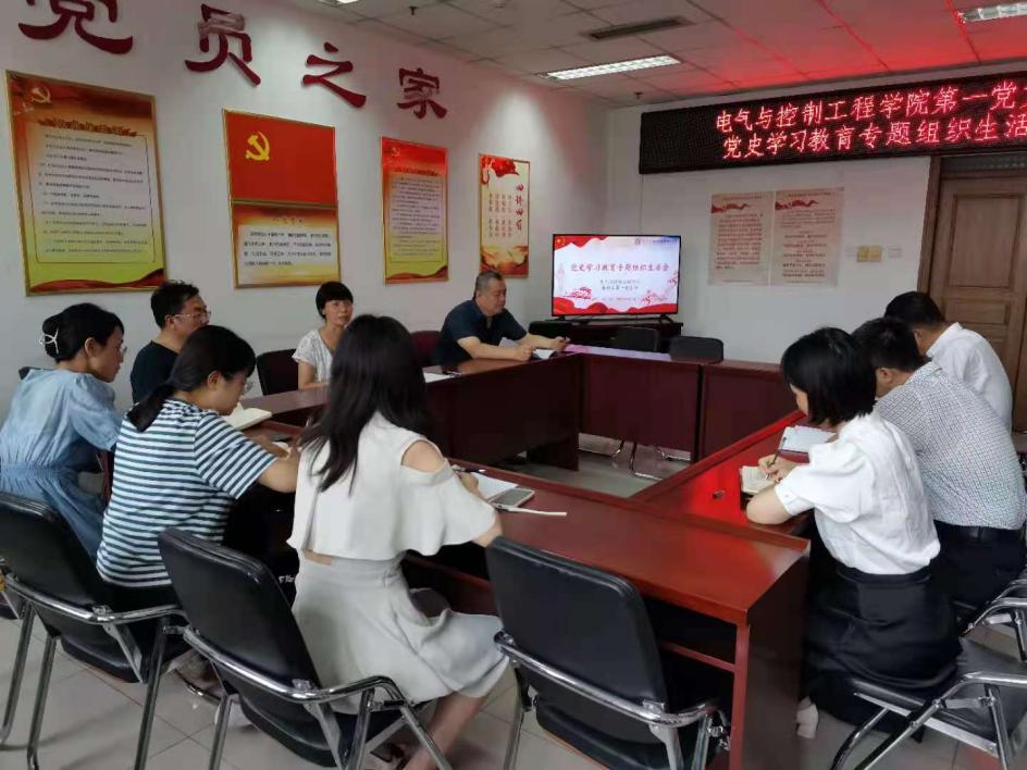 2021年7月7日上午,电气与控制工程学院教工一支部在11号楼621召开了党史学习教育专题组织生活会,联系教工一支部的电气与控制工程学院副院长任一峰列席了支部的组织生活会,会议由支部书记杜苇主持。